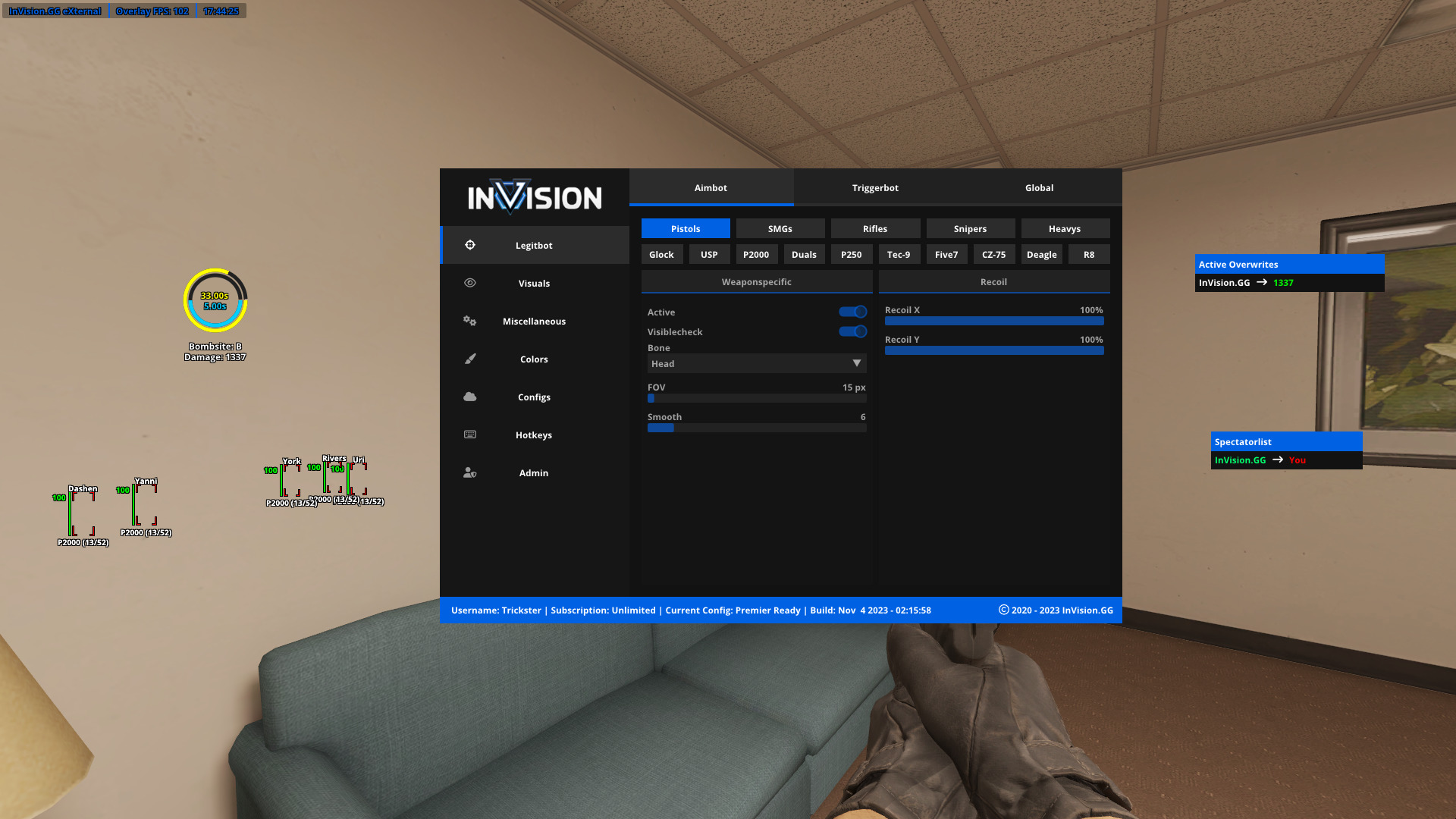 - Weapon Settings: Fine-tune your aimbot and triggerbot settings for each weapon or weapon group.